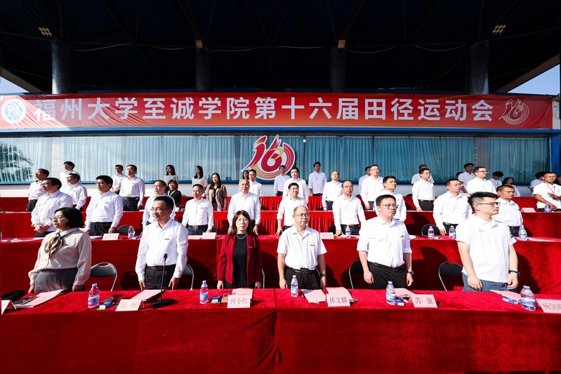党委常务副书记何小红,院党委副书记林文麟,副院长张栋,院长助理苏童、邵艳群,2015届工程管理专业校友、泉州峰冰莹体育用品有限公司总经理杨剑锋,学院各系主任、各机关部处负责人、各党总支书记出席开幕式。开幕式由张栋副院长主持。入场式上,伴随着激昂雄壮的《运动员进行曲》,国旗护卫队擎着鲜艳的五星红旗率先迈步,院旗队、会徽队与彩旗队紧随其后,整齐划一地走过主席台,队员们身姿挺拔、目光坚定,用饱满的热情,充分展示了昂扬向上、奋勇争先的精神风貌。随后,各系代表方阵入场并带来各具特色的表演:外国语系方阵迈着整齐划一的步伐,以自信昂扬的姿态步入赛场,笑容绽放间尽显外语学子心怀世界、融通中外的青春风采;传媒与设计系的同学们用创意巧思诠释力与美的交融,将敏锐的艺术感知与精益求精的匠心融入每一个展示瞬间;数据科学与统计系步伐坚定、身姿挺拔,眼神中满是热忱,以严谨务实的态度和饱满昂扬的热情,展现着对挑战的从容底气;机械工程系踏着精准铿锵的节拍阔步登场,队员们身姿挺拔、精神昂扬,一举一动间彰显出机械系的严谨质感……各系方阵